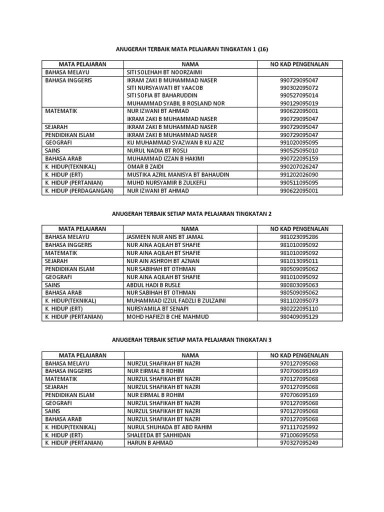 Kategori Terbaik Setiap Mata Pelajaran Tingkatan Pdf